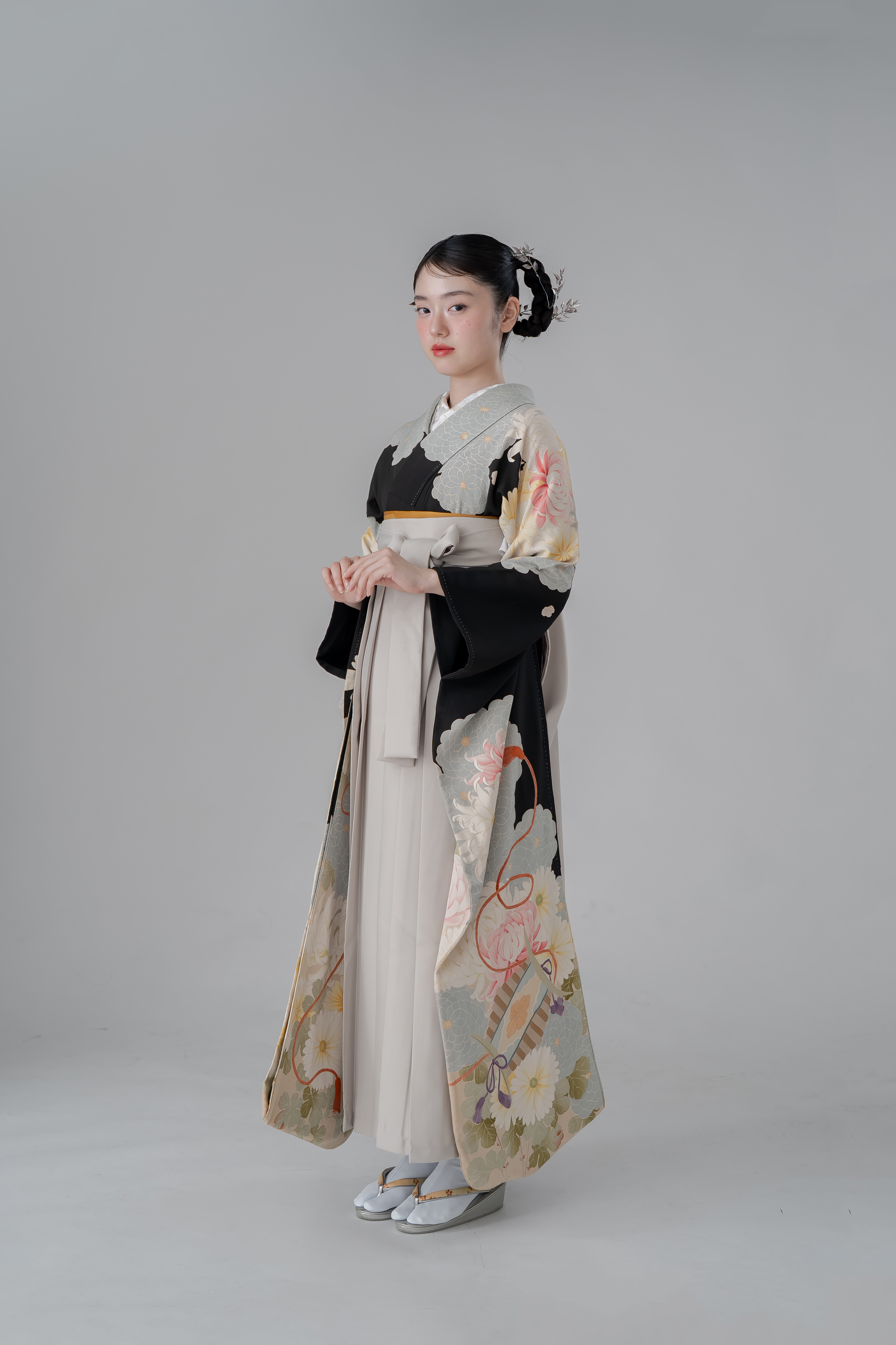 ■袴0053 漆黒の楽器尽くし 袴:生成